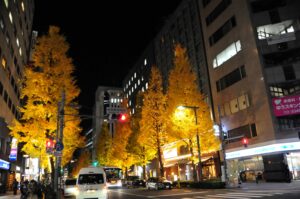 西新宿一丁目では今年も東京都の木「イチョウ」を、ライトアップします