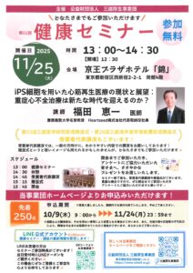 2025年11月25日(火)に公益財団法人三越厚生事業団主催により開催される、『健康セミナー』のご案内をいただきました。どなたでも参加できるそうですので、ぜひご参加いただき、この機会に最新医療の状況について知識を得るのは […]