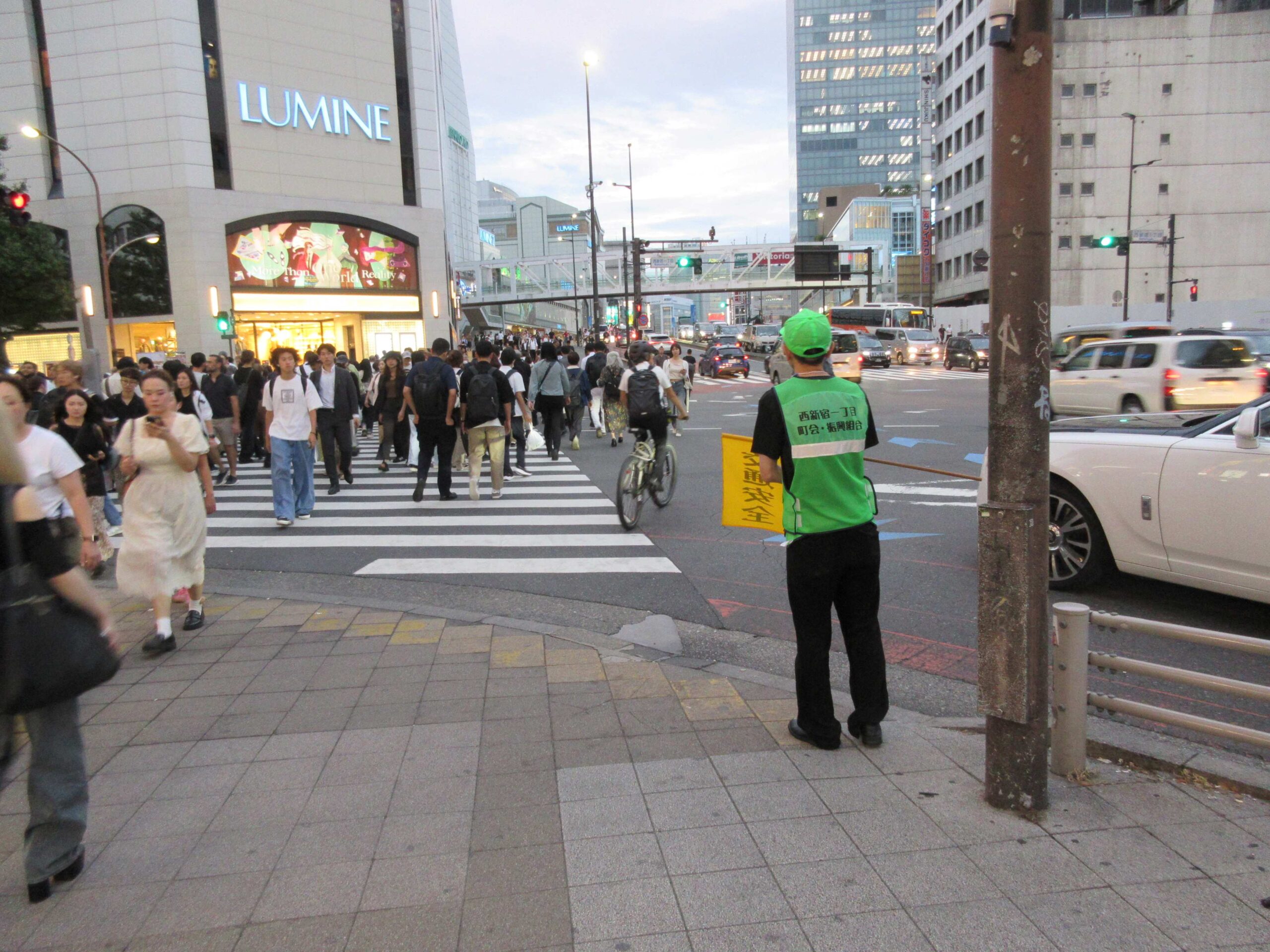 9月21日(日)から9月30日(火)まで、秋の全国交通安全運動が行われました。西新宿一丁目町会/商店街振興組合会員各位のご協力のもと、西新宿一丁目交差点で歩行者の交通誘導を行いました。ご参加いただきました、鳳企業㈱アラジン、カラオケ館、三幸商事㈱、㈲水野屋商店、㈱ソフマップ、ファーストキッチン㈱(順不同敬称略)の皆様、お疲れ様でした。
