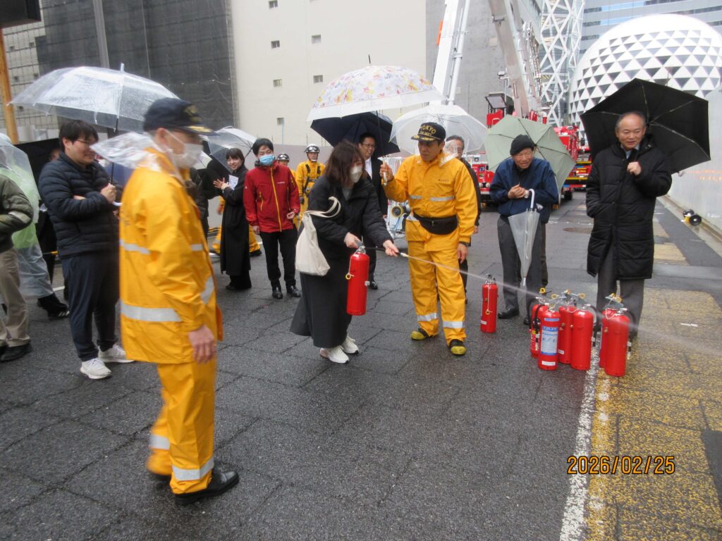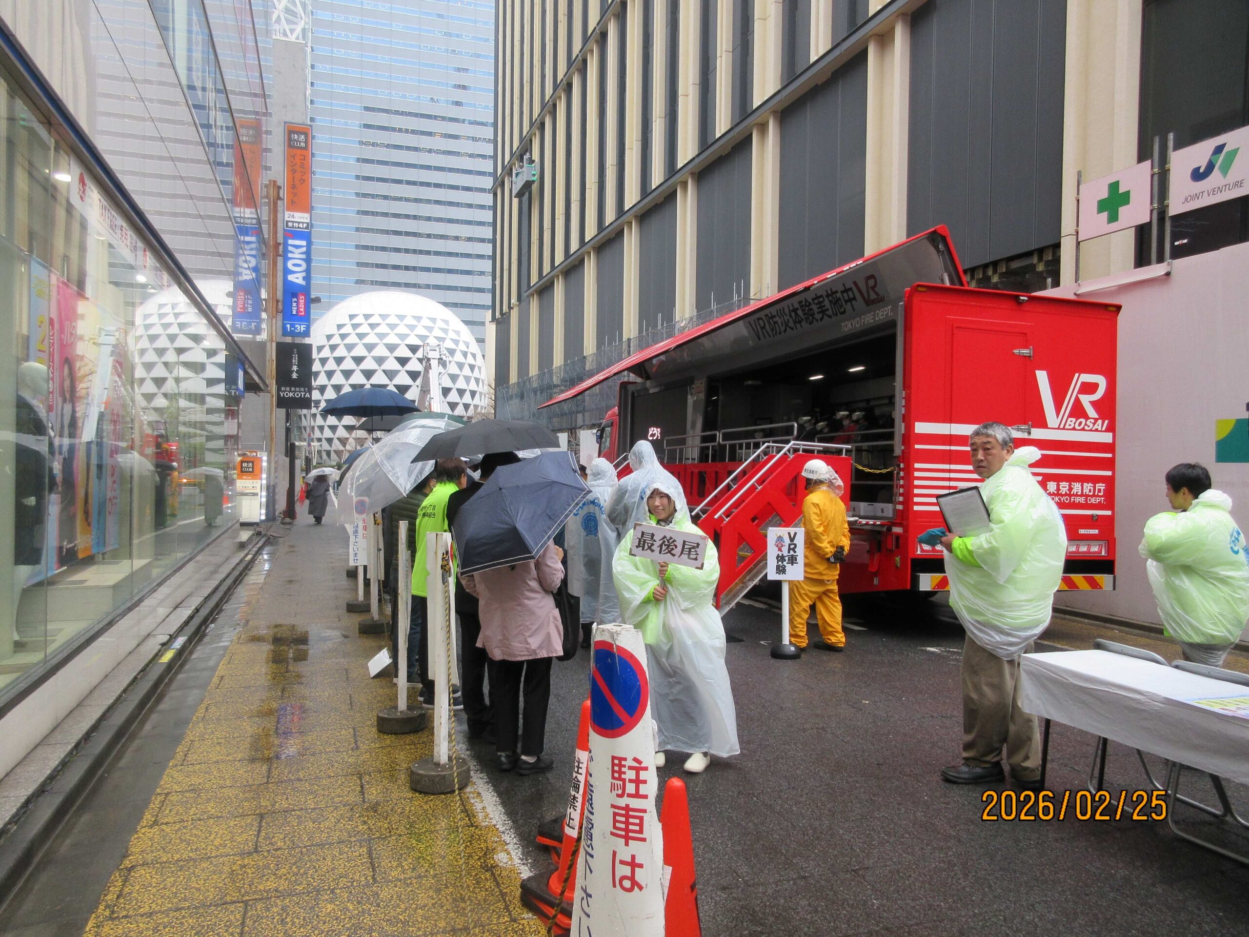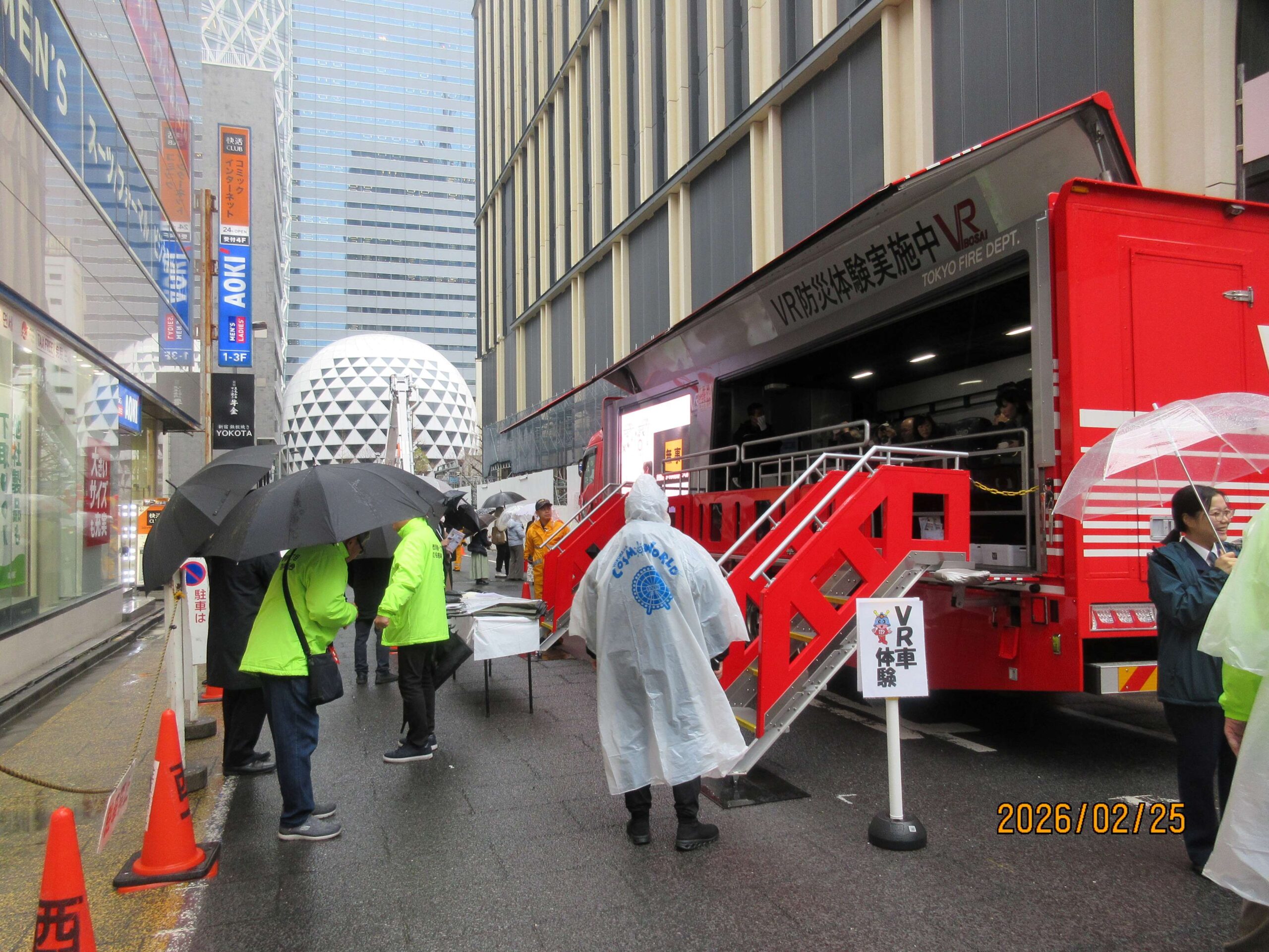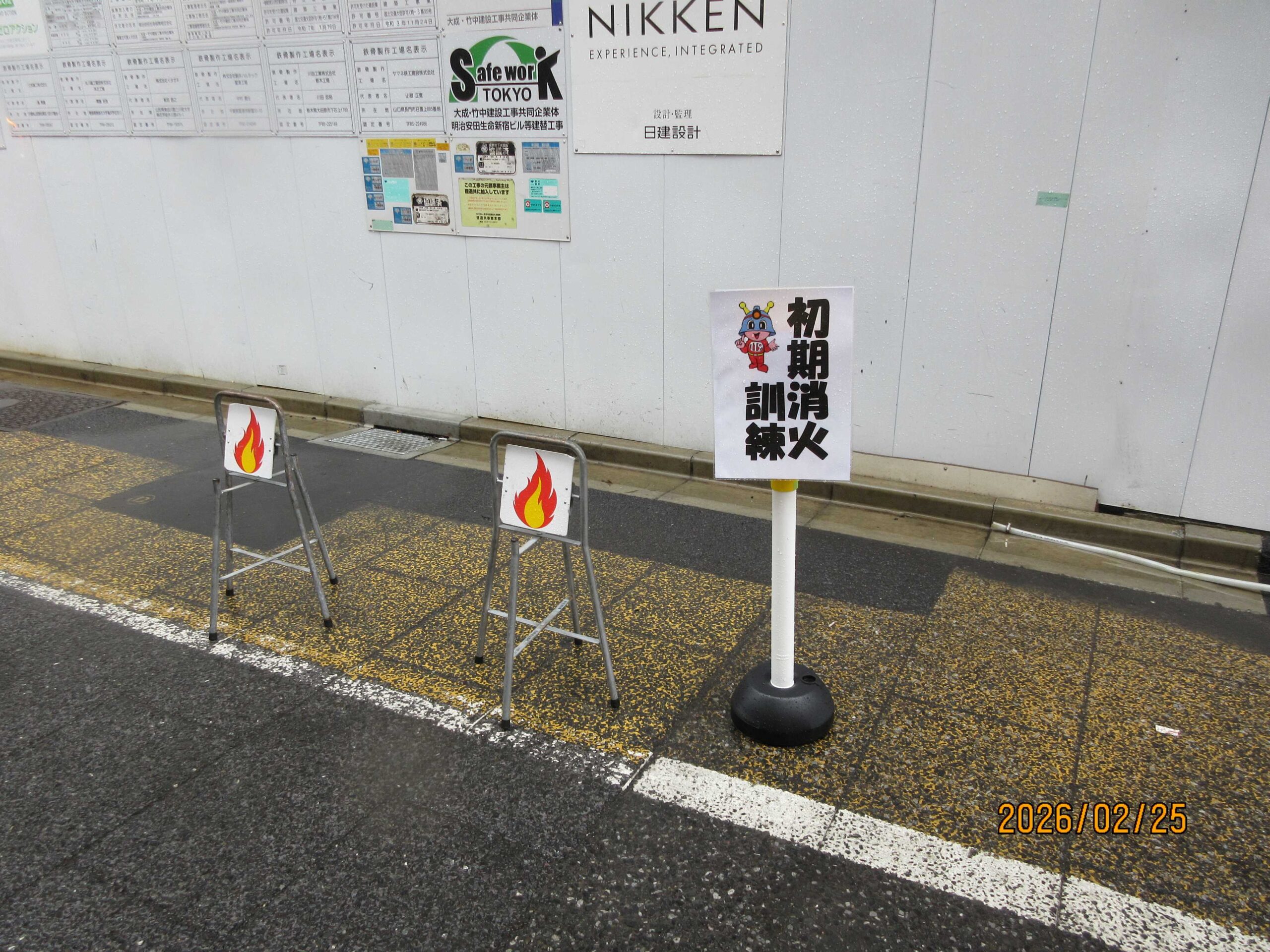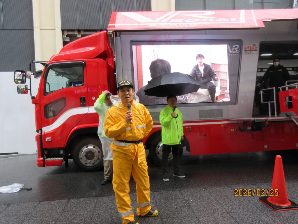 令和8年2月25日(水)午前10時から、旧小田急電鉄本社ビル前(明治安田生命新宿ビル工事AOKI側)の道路で、防災訓練が行われました。