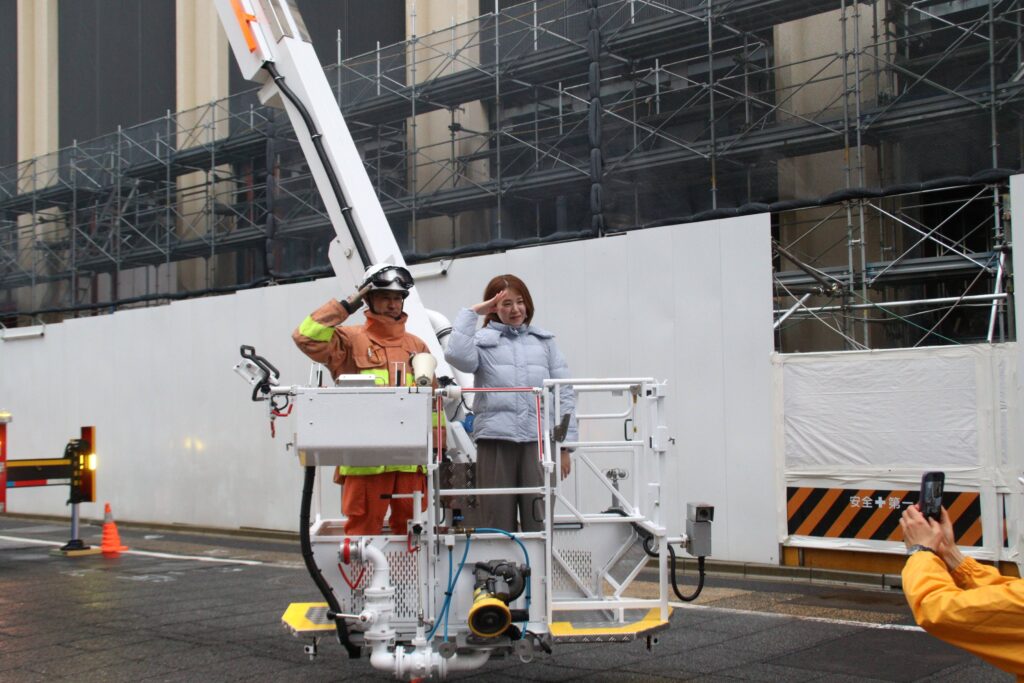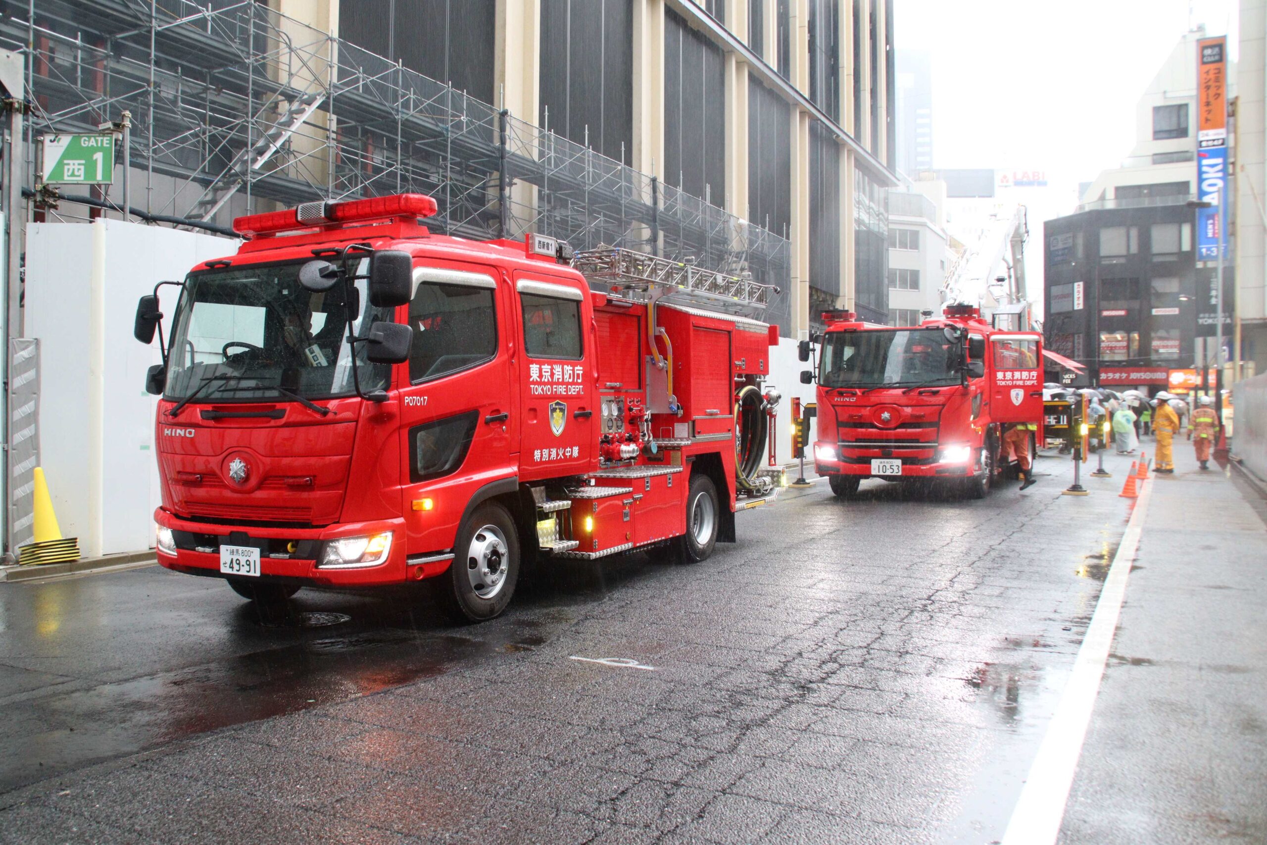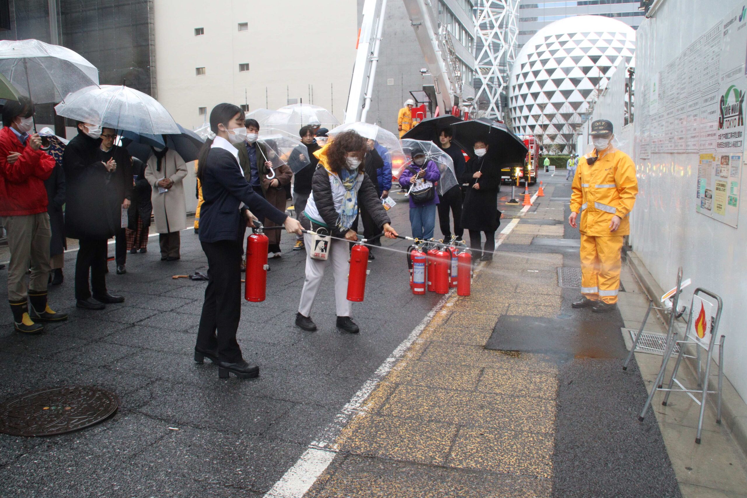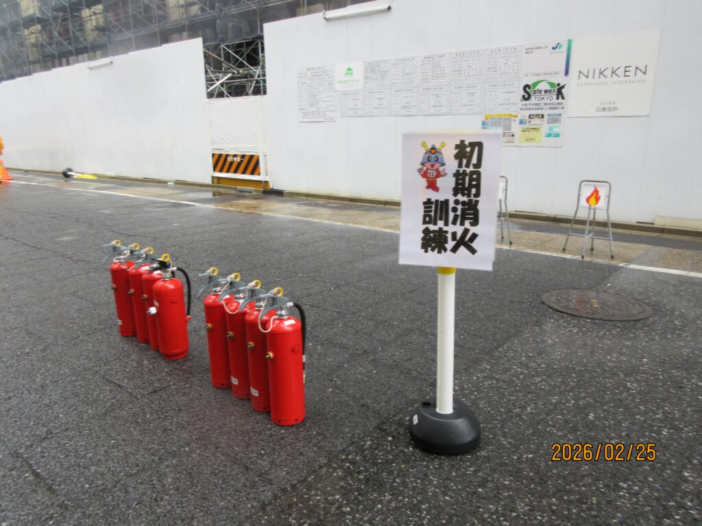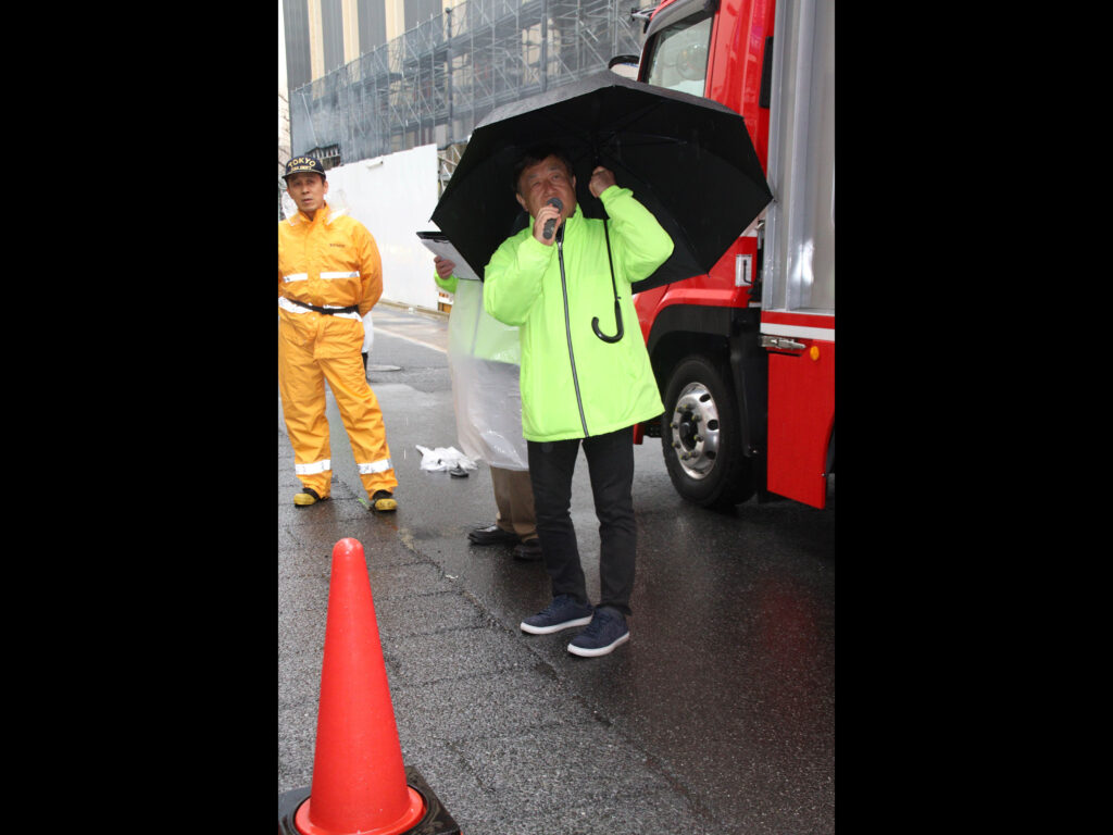 令和8年2月25日(水)午前10時から、旧小田急電鉄本社ビル前(明治安田生命新宿ビル工事AOKI側)の道路で、防災訓練が行われました。